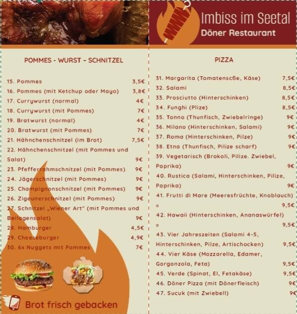 Imbiss im Seetal bietet Ihnen eine Vielzahl von köstlichen Gerichten in gemütlicher Atmosphäre. Besuchen Sie uns und lassen Sie sich verwöhnen!